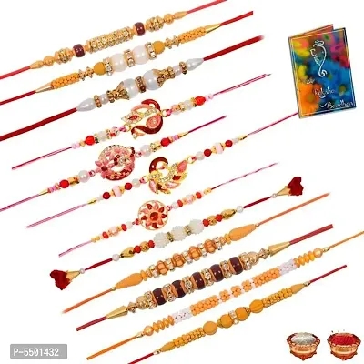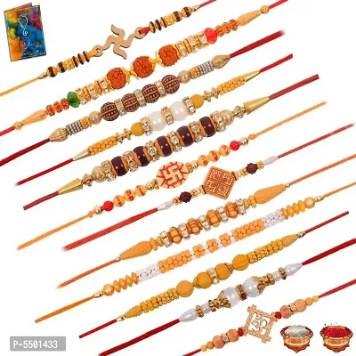 Rakhi Set of 12 family rakhi with Roli Chawal & card